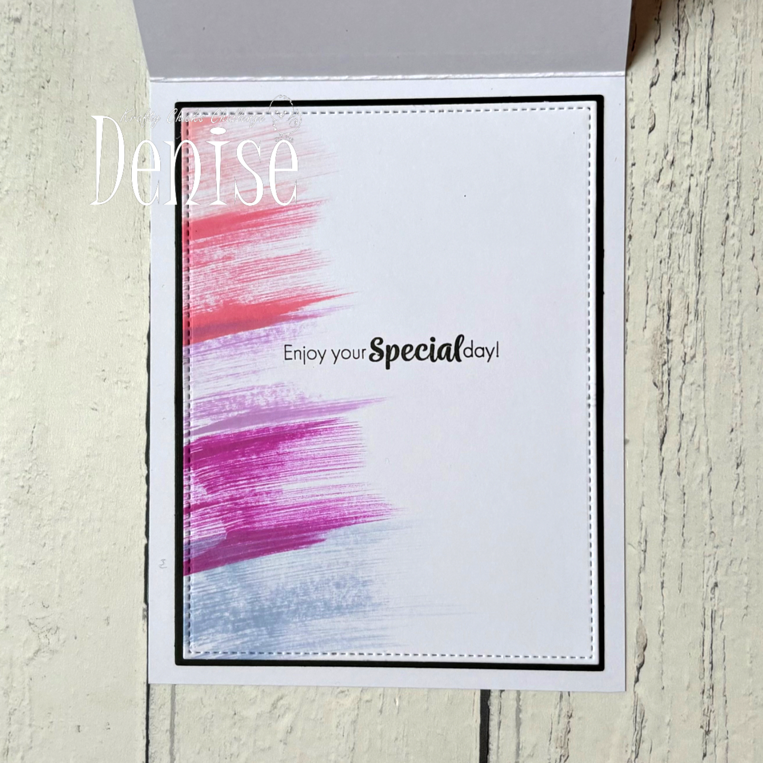 I began by stamping all my images and used the matching stencils to colour them in. I love matching stencils as they make colouring so simple but look fantastic. I also used the coordinating dies to cut them out. I used the square dies from Master Layouts 3 to cut the panel behind my wreath and adhered them together with double sided tape. I then cut a white panel 5 3/4' square and a slightly larger mat black. I used a stencil and some very light grey ink to create a soft background for my card. I temporarily placed the wreath where I wanted it so that I could stamp the 'sister' word in black ink and then adhered the wreath using foam squares. I stamped and die cut the birthday sentiment and also added that with foam squares. The smaller square was added to the stencilled square with double sided tape and then the whole thing was adhered to my card base with double sided tape. For an extra bit of bling I added a few clear sequins around the sentiment and also on the wreath. For the inside I created the same panels and also did the stencilling again. I stamped, stencilled and die cut one more flower and adhered it to the bottom left corner with liquid glue. I stamped a sentiment in black ink in the centre. The panels were then adhered to the card base with double sided tape. A really pretty card, which looked even nicer in real life, and my sister loved it.
